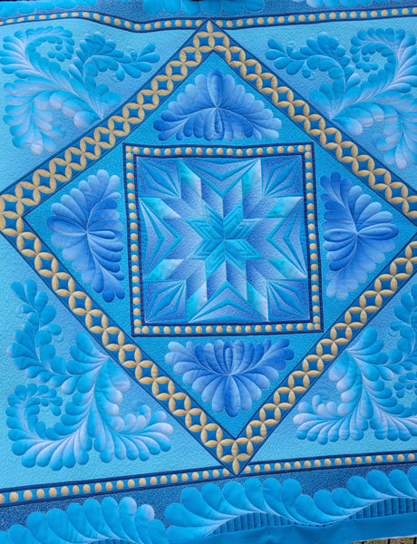 This elegant whole cloth style panel gives you a beautiful starting point, and I guide you step by step through quilting it with free motion feather designs helping you learn design placement, flow, and confidence without the guesswork.